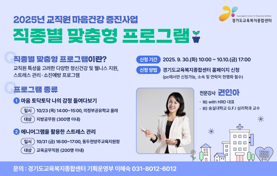 ['25년 마음건강 증진사업] 직종별 맞춤형 프로그램 신청 안내